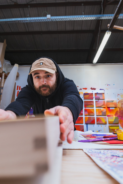 L’artiste nous invite à découvrir Spectre du visible, une exposition où la couleur devient une véritable expérience sensorielle. Inspiré par les phénomènes simples du quotidien – reflets, ombres, lumière changeante – il développe une peinture où superpositions, transparences et effets optiques créent des œuvres en mouvement.